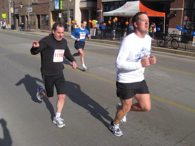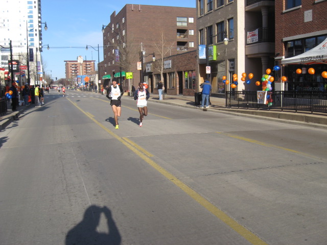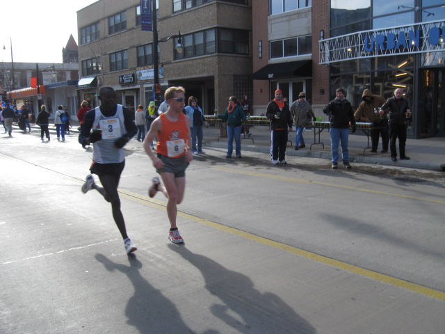 We’ll start with the longest distance first. Andy Derks (02?) has had a great runner career (State of Illinois HS Mile Champ...from Rochester) and many great races as a Panther. Following graduation, he gets better....many great races..lots of marathons from Boston to Chicago. Here (about mile 12) he is running with the eventual Marathon winner.
