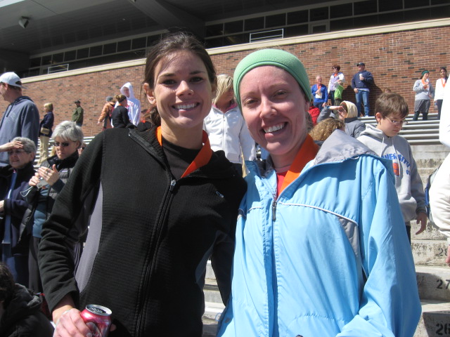 Kristin Chandler (04?) and Amanda Schutte (04?) were both teammates on the EIU Track and Cross Country Teams. Here they pose following their half-marathon efforts. Kristin’s 1:34:54 (7:15) was good enough for 6th of 433 in her age group. Amanda is now coaching and completed the course in 2:01:47