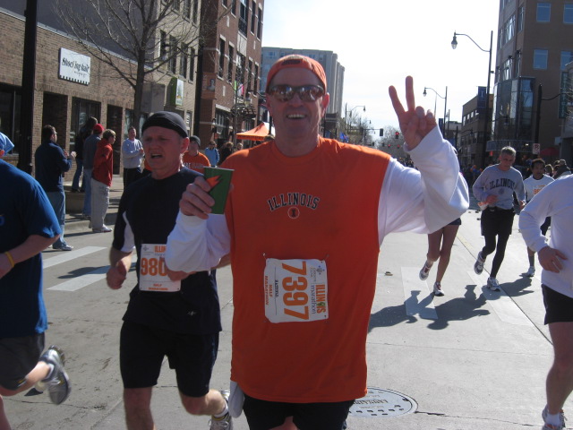 There is no way to correctly identify all the participants who had direct or indirect connections to EIU, but with a camera, a great spotter (John McInerney) and what appears to be an accurate web site of results (www.illinoismarathon.com) here is a little summary that you might enjoy.