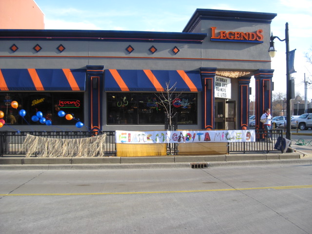 We walked to what was about the 1.5 mile mark in the opening portion of the Marathon, 1/2 Marathon and 5K races. Ironically, it was just across the street from a restaurant which is now called Legends (30 years ago it was called “the Deluxe). In 1979, John McInerney sat inside eating while teammate Mike Hatfield was setting a new EIU Steeplechase record (8:52)...which held up until 3 years ago) on the track about 3 miles away. Mac misread the time schedule and Hat has never let him forget it.